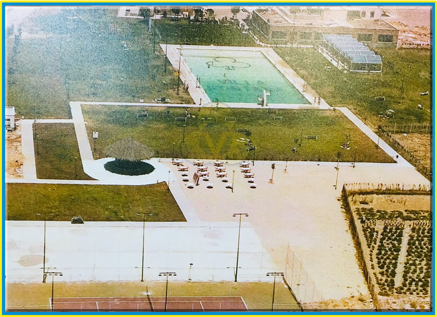 Vecinos implicados impulsaron la idea de que el POLIDEPORTIVO fuera centro de práctica de muchos deportes, y actividades sociales. Se comenzaron a construir más instalaciones deportivas, gradas etc. Surgieron las pequeñas fiestas y eventos. El kiosco de bebidas dio paso a otro kiosco bar más grande, con mesas sombreadas donde los vecinos podían disfrutar de sus propias meriendas traídas desde casa.
